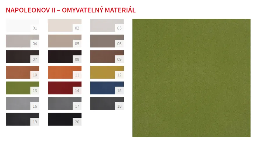V obývacím pokoji můžete do přírodní zelené odít vaši novou sedačku. V naší nabídce najdete například potahy Napoleon v odstínu 17 a Napoleonův II 13, či dokonce kůži Florida 532 nebo Prince 158. Pokud si netroufáte na sedačku ve výrazném odstínu, můžete se zaměřit na drobný doplněk nebo v této barvě zvolte židle k jídelnímu stolu, závěsy v ložnici či kachličky v koupelně. Velmi vhodnou a příjemnou volbou jsou také živé květiny, kterými se u vás doma obklopíte.