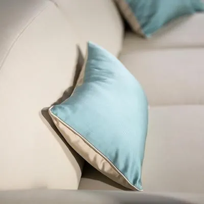 Světlou sedačku efektně doplníte jemnými i sytějšími pastelovými barvami. Příkladem mohou být tyrkysové polštářky ze série CRYSTAL GLOSS, které najdete v našem e-shopu. Zdroj: eshop.sedackyphase.cz
