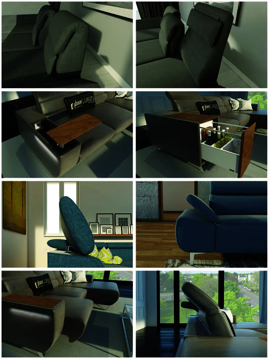 Sedačky mohou obsahovať různé funkční vychytávky, které Vám zpříjemní lenošení. Phase sedačky mají v nabídce například několik modelů s polohovatelnou opěrkou hlavy a s elektrickým nebo manuálním výsunem sedáků. Chcete-li sedět, sedák máte stažený a chcete-li lenošit, sedák jednoduše vysunete a zvětšíte si šířku sezení.