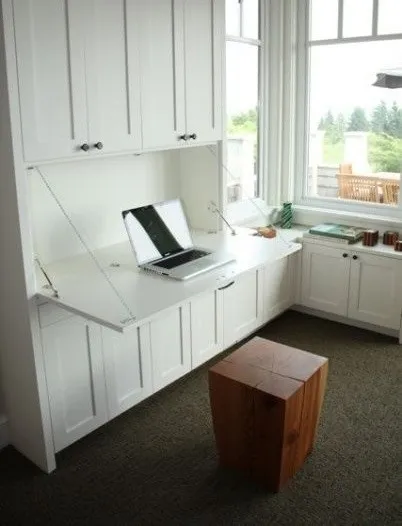 Do skříně zhotovené na míru můžete skrýt téměř cokoliv. Jednoduše tam schováte i váš osobní pracovní prostor. Zdroj: Pinterest.com