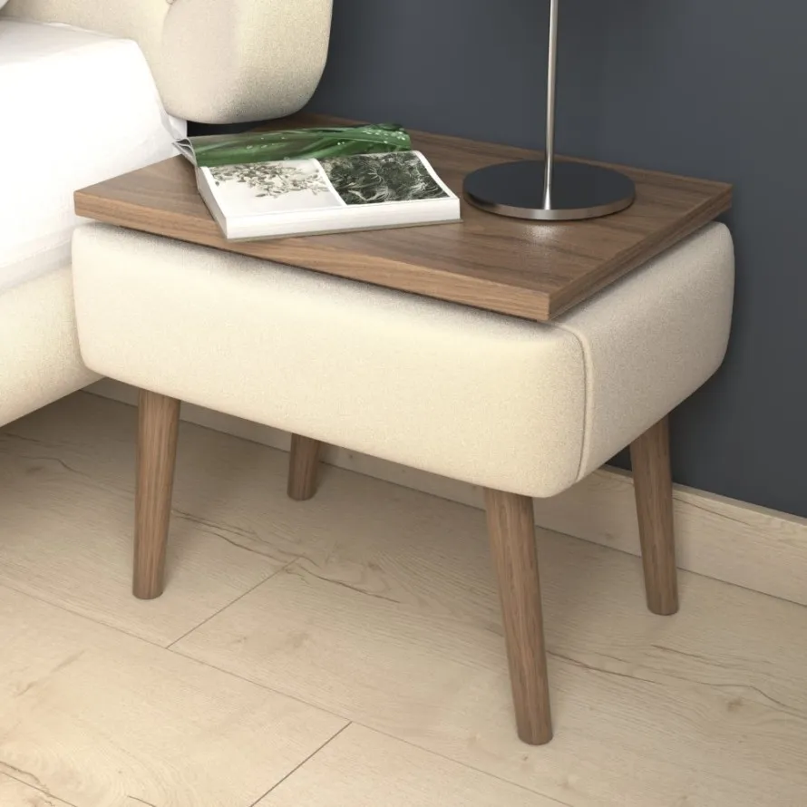 Noční stolek je navržen tak, aby zachoval linii designu postele Bella. Je vybaven jedním šuplíkem, který je skrytý pod čalouněním. Vizuálně působí měkce a odlehčeně a tento pocit jsme dosáhli i při dotyku – díky jemné látce a molitanu.