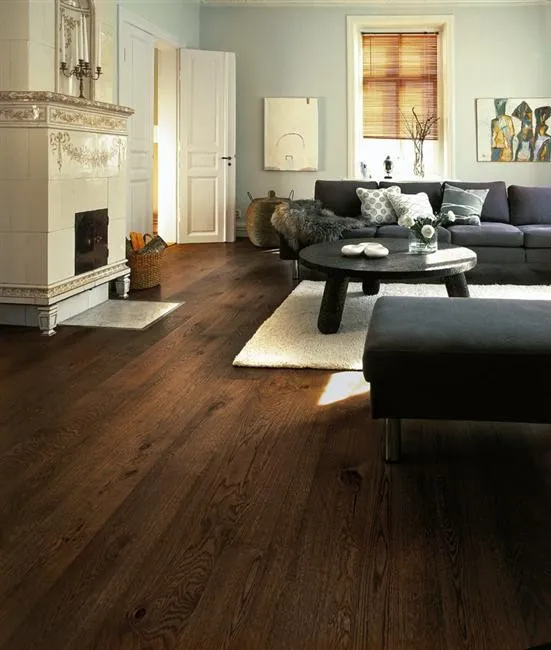 Jestli jste milovníci kontrastů, skvělým základním kamenem pro vás bude naopak podlaha tmavá. Tmavé podlahy můžeme dokonale spojit se stěnami ve světlých barvách nebo s jinými tmavými barvami, které se používají na zvýraznění a doplnění. Vyhněte se intenzivně bílé a namísto toho zvolte jiné odstíny než bledou nebo bílou se slabým nádechem jiné barvy. Nebojte se doplnit interiér barevnými doplňky. Mnoho tmavých barev může totiž nakonec působit ponuře.